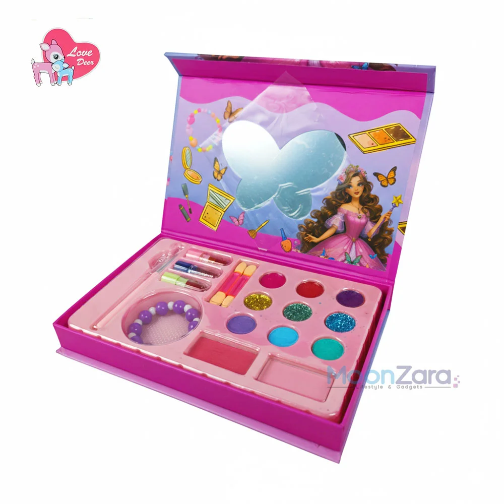 Make your little princess’s playtime more colorful and fun with the Love Deer 3-in-1 Kids Beauty Play Set. This all-in-one kit combines makeup and jewelry to inspire creativity, imagination, and a sense of style in young children. Every item is specially designed to be safe for delicate skin and Baby Skin Safe Certified.